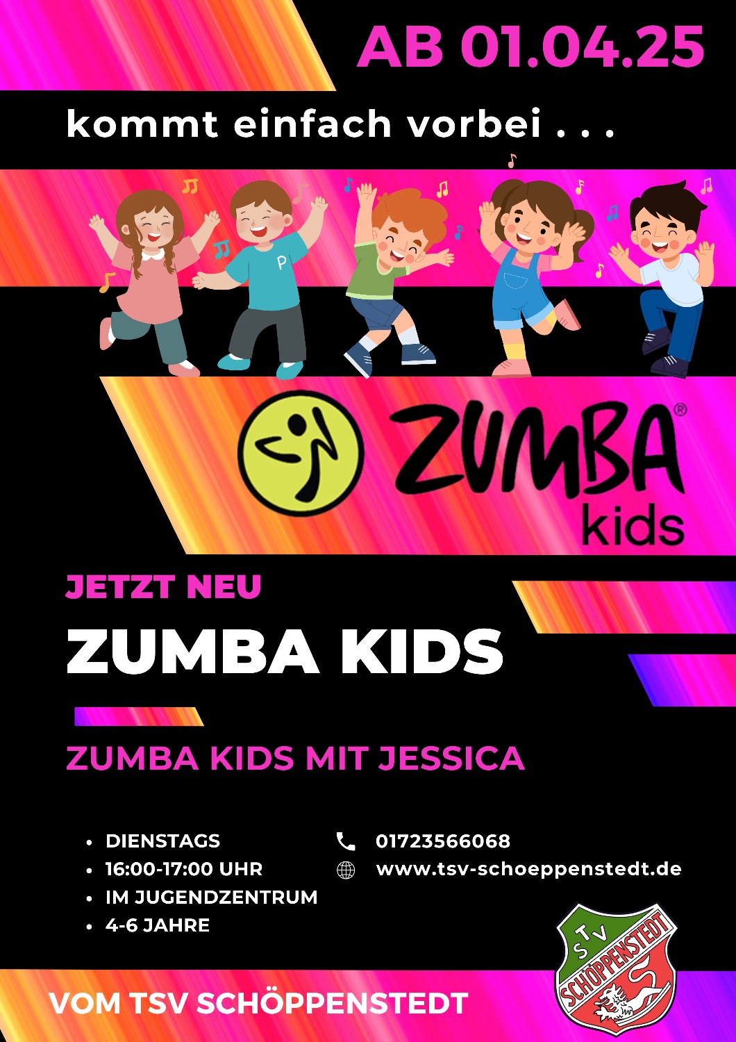 Lust auf Bewegung, Musik und jede Menge Spaß? Dann ist unser neuer Zumba Kids Kurs genau das Richtige für Eure Kleinen! Ab dem 1. April treffen wir uns immer dienstags von 16 bis 17 Uhr im Jugendzentrum.